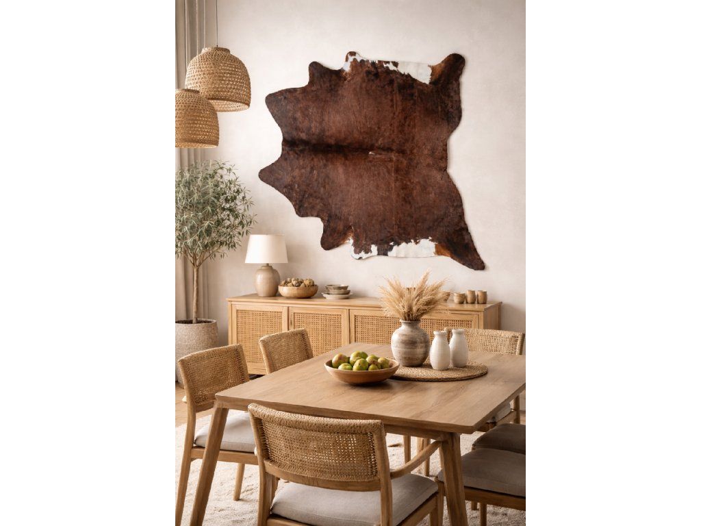 - Dekorativna kravja koža na steni: luksuzen element za galerije, pisarne ali stilsko bivanje