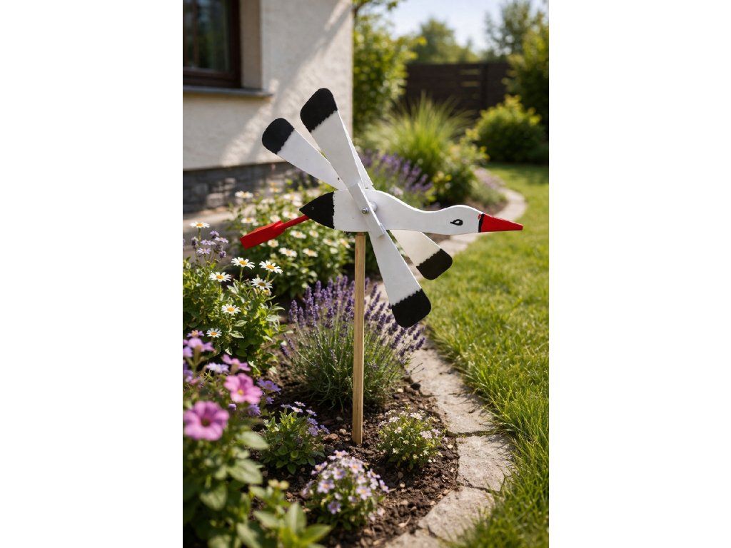 🪶 Leseni vrtavček Štorklja – živahna in igriva dekoracija za vaš vrt