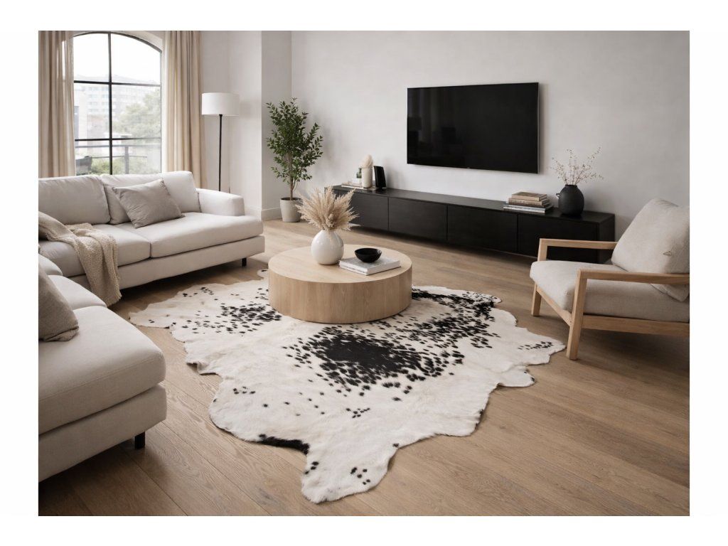 🤍🖤 Belo-črna goveja koža – luksuzna kravja koža kot preproga in dekoracija