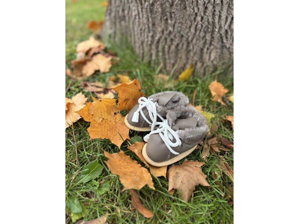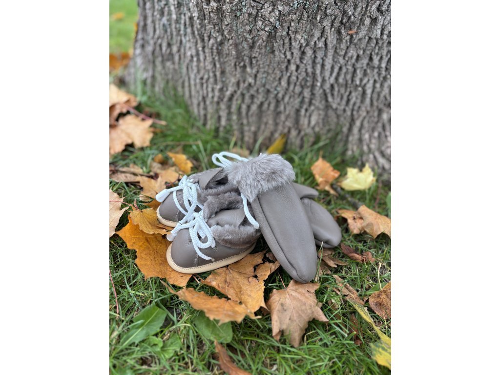 Rokavice in palčniki so izdelani iz fine volne, ki naravno uravnava temperaturo, odvaja vlago in ostaja zračna. Zahvaljujoč temu so otroške noge in roke vedno suhe in tople - brez pregrevanja. Mehka notranja plast ovčjega flisa zagotavlja maksimalno udobje, trpežna zunanja površina pa ščiti pred mrazom in vetrom.