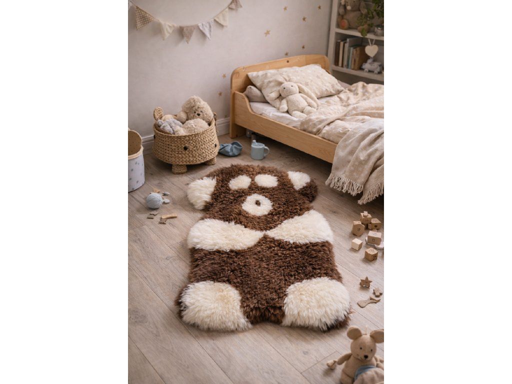 Otroci imajo radi mehke površine, ljubke oblike in varne prostore. Ta preproga iz ovčje kože ima vse: je topla, mehka in ima obliko nasmejane pande. Na tleh ustvari igriv prostor, kjer se lahko vaš otrok igra brez stika s hladnimi tlemi. Idealna je kot darilo ali kot nov element v otroški sobi.