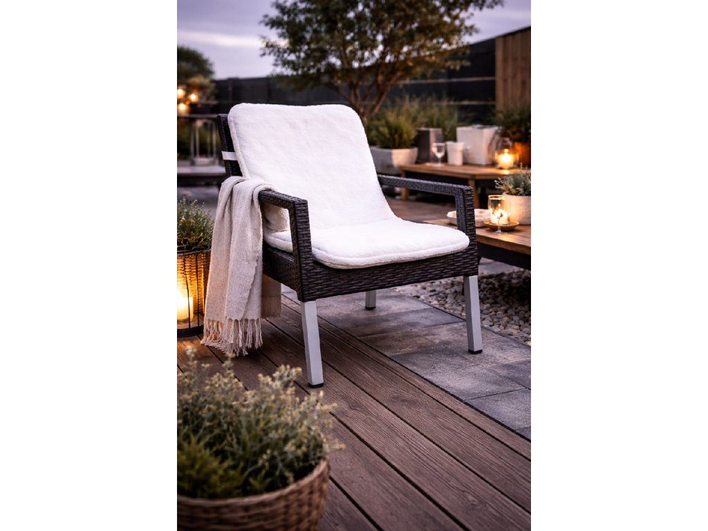 Ovčja volna je zračna, naravno hipoalergena in idealna za dolgotrajno sedenje – doma, v službi in na poti. Bela barva daje sedežni blazini eleganten, brezčasen videz, ki se zlahka prilega tako moderni kot rustikalni notranjosti.