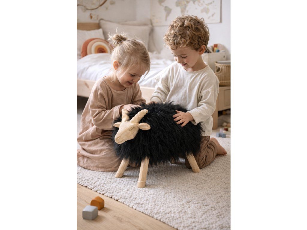 🐏 Stol Baran Črn – luksuzna ovčja koža in tradicionalna izdelava za vaš dom 🖤