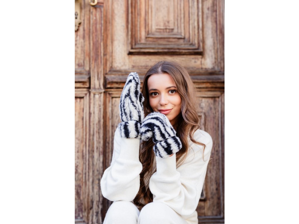 Volnene rokavice v zebra barvi
