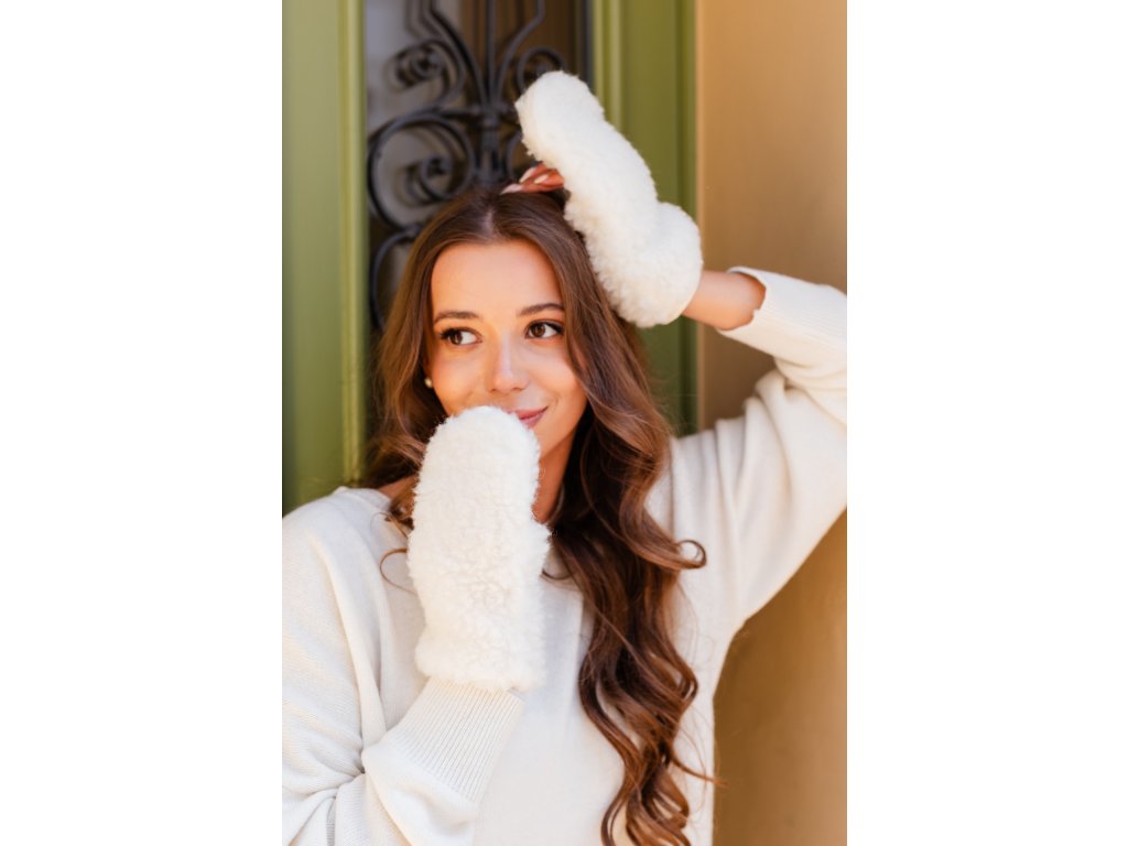 Bele volnene rokavice iz fine merino volne ponujajo eleganten videz in naravno toplino, idealne za hladne zimske dni.