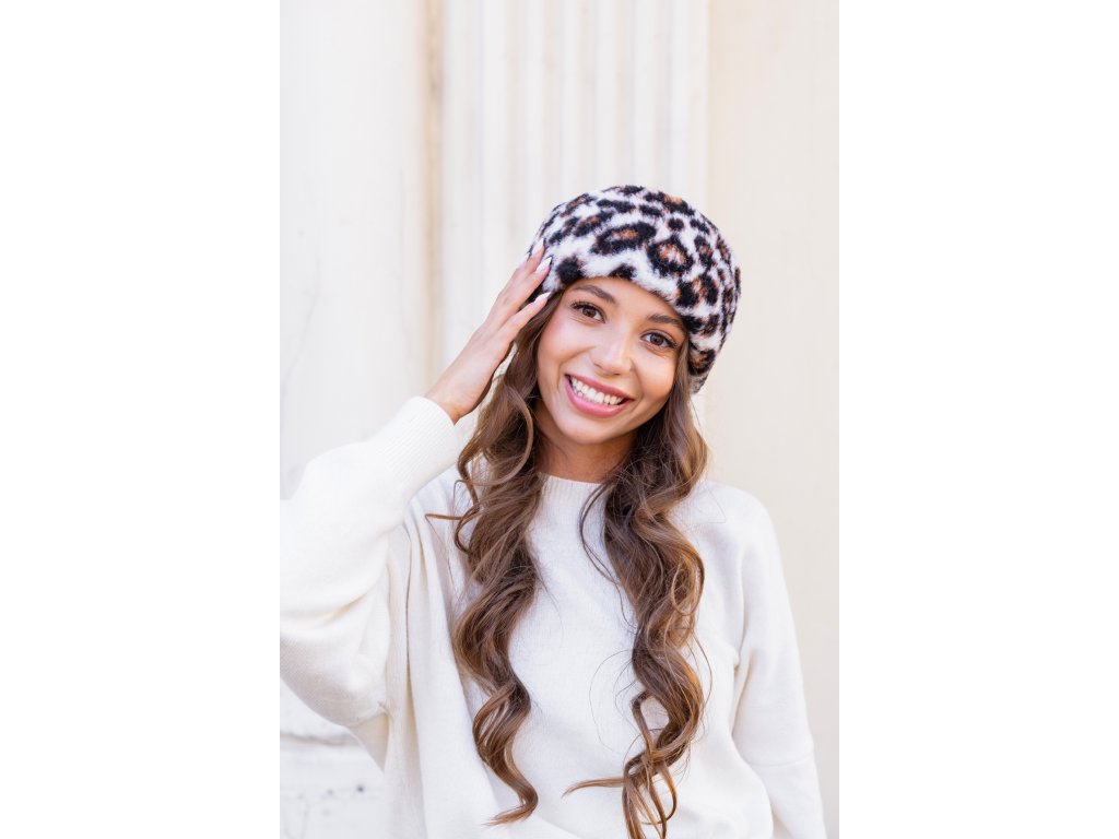 Ta volnena trak za glavo z leopardjim vzorcem je izdelana iz fine merino volne, ki zagotavlja maksimalno toplotno udobje in eleganten videz.