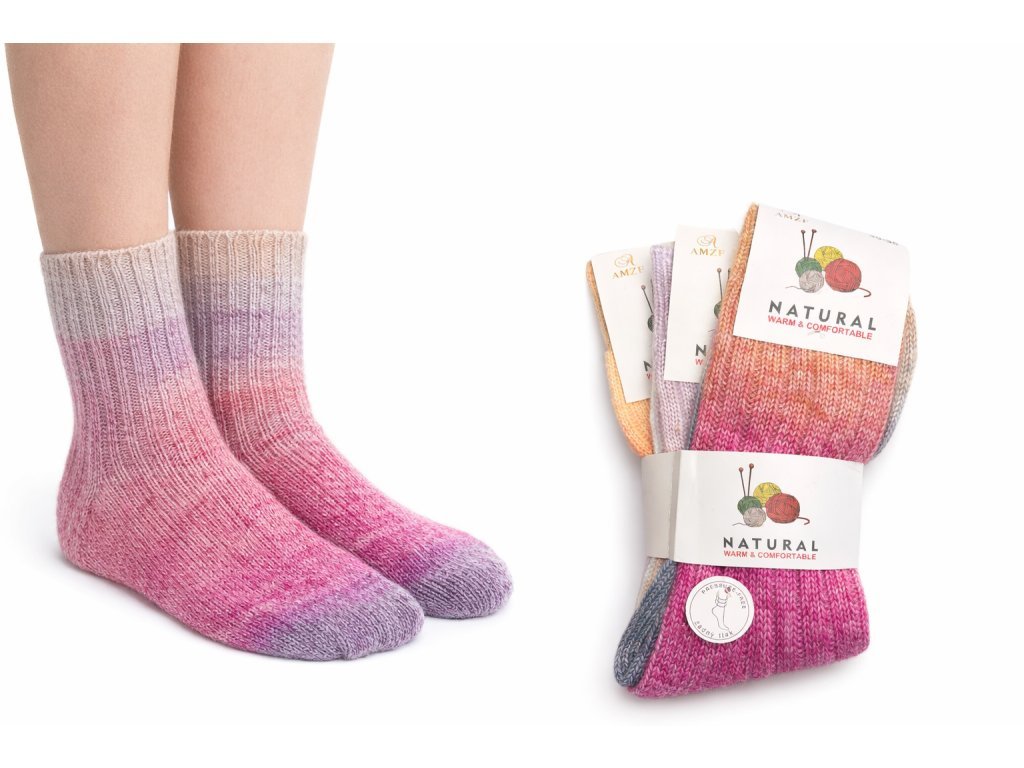 Ženske barvne volnene nogavice – 3 pari | 95 % volna
