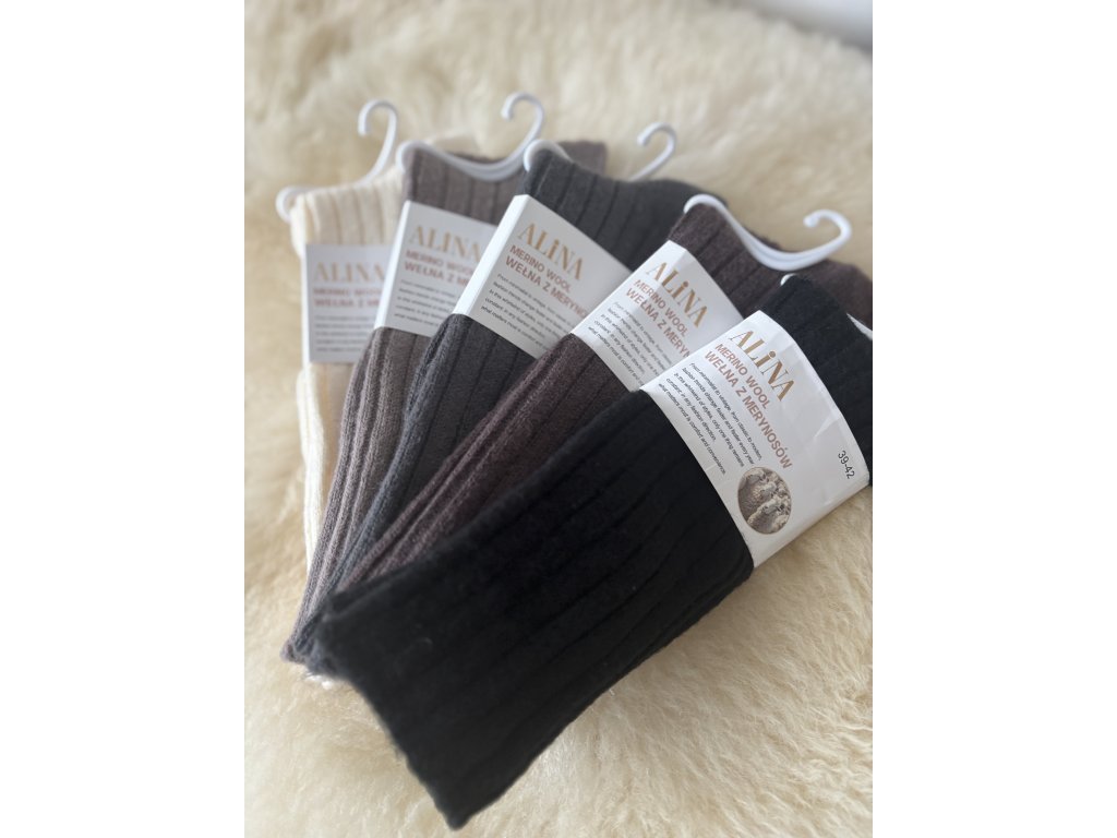 🧦 Ženske dokolenke iz merino volne – 5 parov (velikosti 35–38, 39–42)