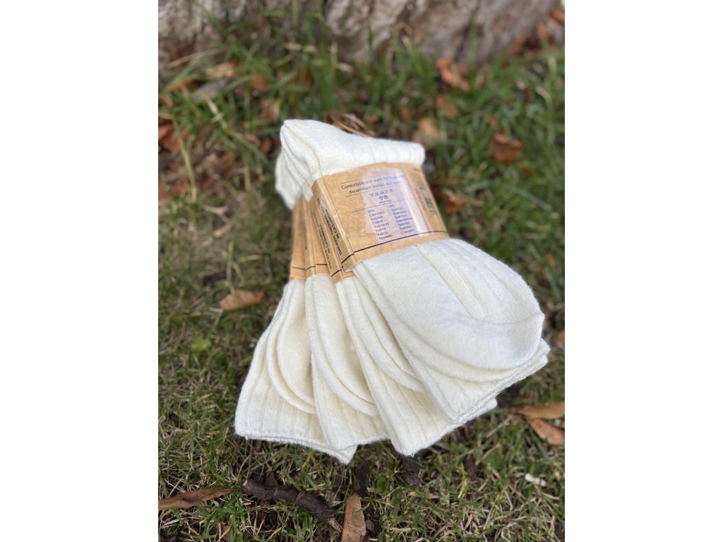 Za razliko od običajnih bombažnih nogavic imajo te kašmirske nogavice edinstvene lastnosti - so lahke, zračne in neverjetno tople. Zaradi vsebnosti spandeksa se trdno oprimejo stopala, ne drsijo in ne tiščijo. Njihova čisto bela barva izgleda elegantno, mehko in univerzalno – odlično se poda k vsaki obleki in vrsti obutve.