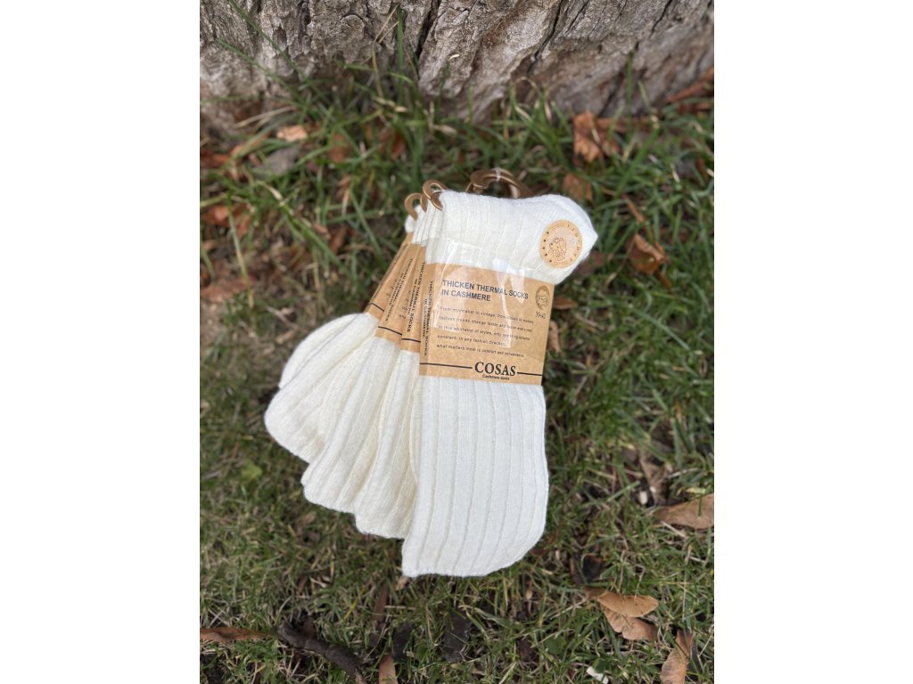 Uživajte v vrhunskem udobju pozimi z našimi ženskimi termo kašmirskimi nogavicami v elegantni beli barvi. Razkošna sestava 95 % kašmirja in 5 % elastana zagotavlja, da bo vsak korak topel, mehak in izjemno udoben. Kašmir je eden najredkejših naravnih materialov na svetu - je izjemno mehak, gladek na dotik in odlično zadržuje toploto, hkrati pa ostaja zračen. Zahvaljujoč dodatku elastana so nogavice prožne, trpežne in se odlično prilagodijo stopalom, zato ohranijo svojo obliko tudi pri redni uporabi.