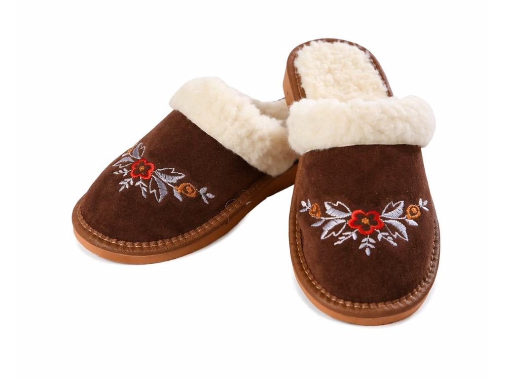 Eleganten in brezčasen dizajn v rjavi barvi daje copatom prefinjen videz, ki ga je enostavno kombinirati z različnimi slogi notranjosti. Debela notranja plast ovčje volne zagotavlja razkošen in udoben občutek na vsakem koraku. Preprost kroj omogoča enostavno obuvanje in snemanje, kar je idealno za hitro in udobno uporabo.
